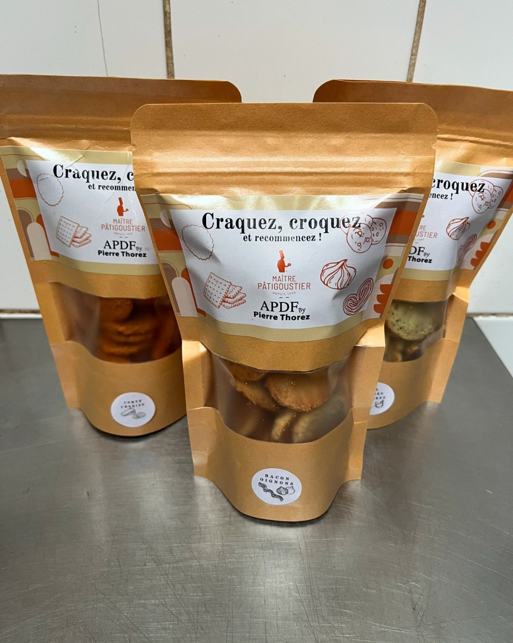 Sachet de 100 Grs de sablés salés, fabrication artisanale, Emmental/fleur de sel.