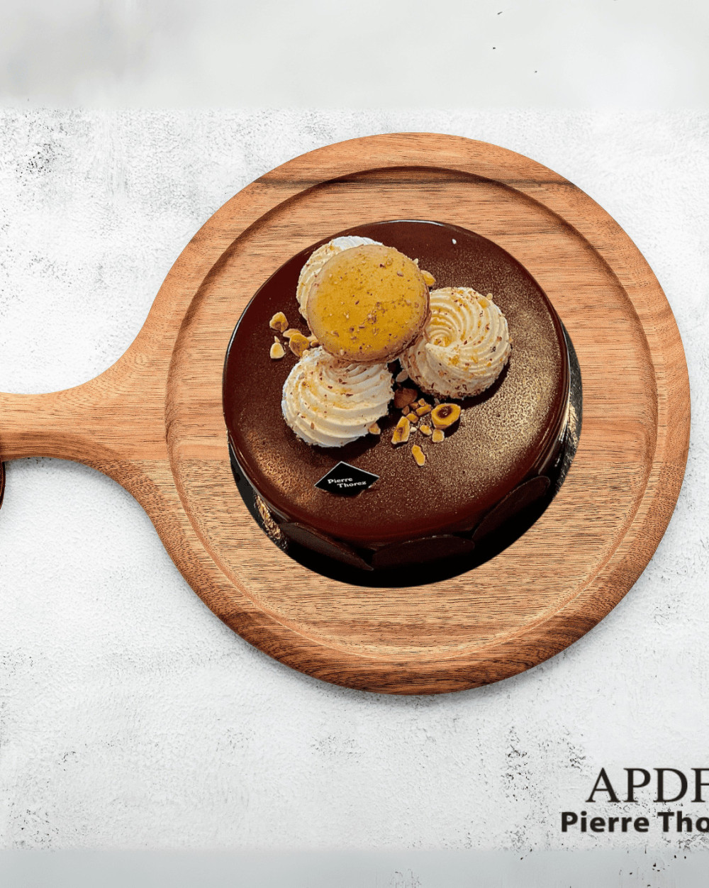 Mousse au chocolat sur une feuilletine pralinée avec ses noisettes caramélisées et sa crème légere aux noisettes.