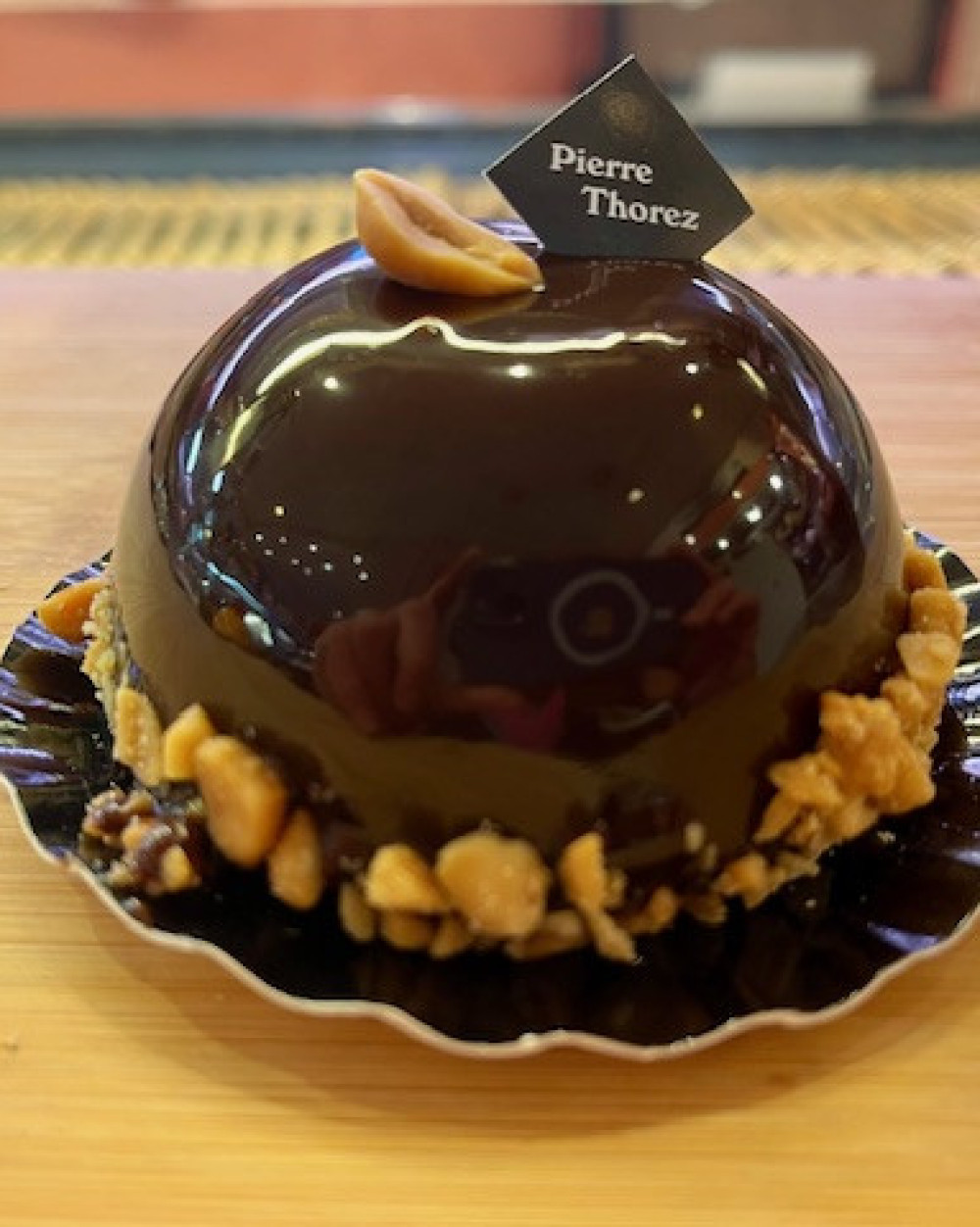 Mousse Amatika chocolat façon lait et d'un ultra crémeux chocolat noir sur un croustillant noisettes - cacahuètes et sur un biscuit chocolat cacahuéte.